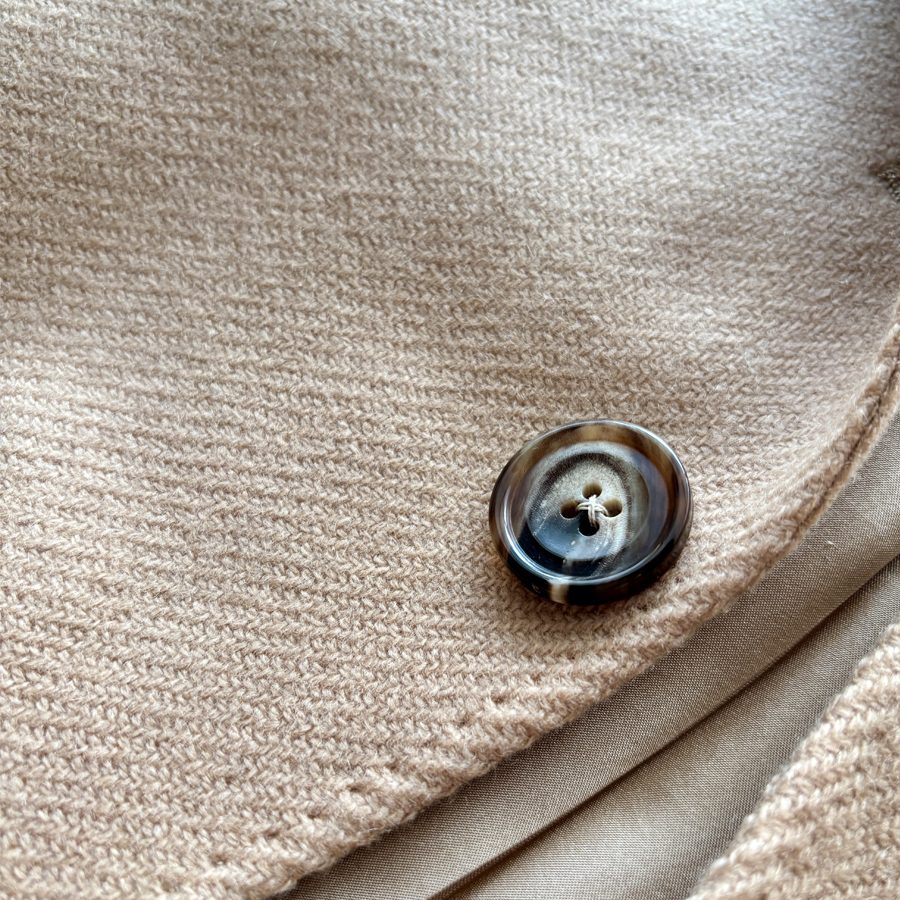 本水牛ならではの自然な艶と奥行きのある色合いのボタンが特徴です。
