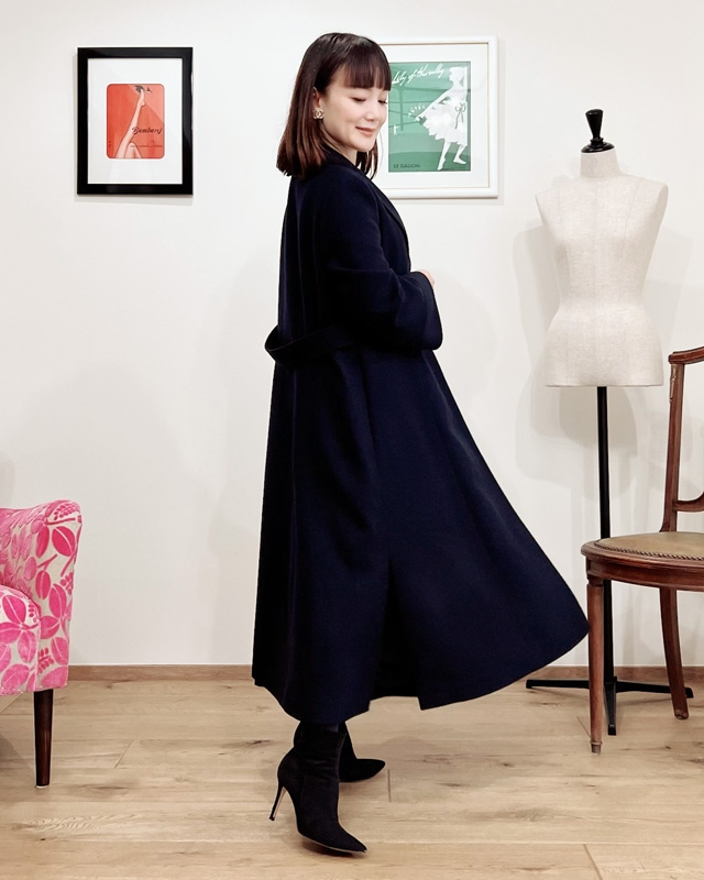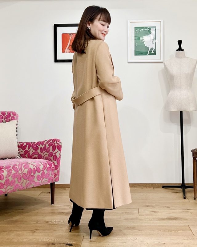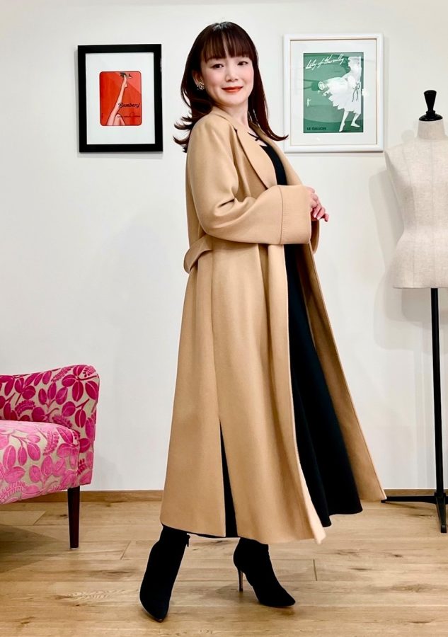ロング丈のコートは中に着る洋服を全て覆ってくれるので、